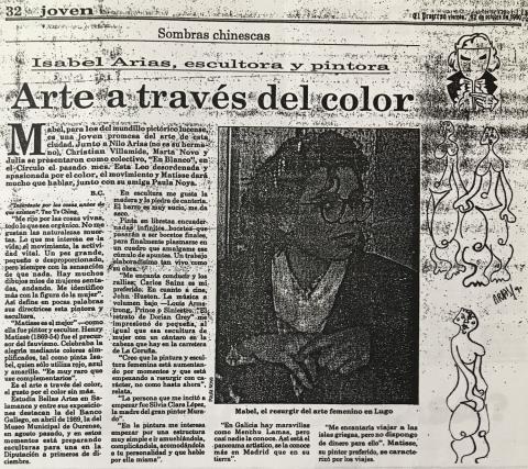 Mabel, para los del mundillo pictórico lucense, es una joven promesa del arte de esta ciudad. Junto a Nilo Arias, Christian Villamide, Marta Novo y Julia se presentaron como colectivo, "En Blanco", en el Círculo el pasado mes.